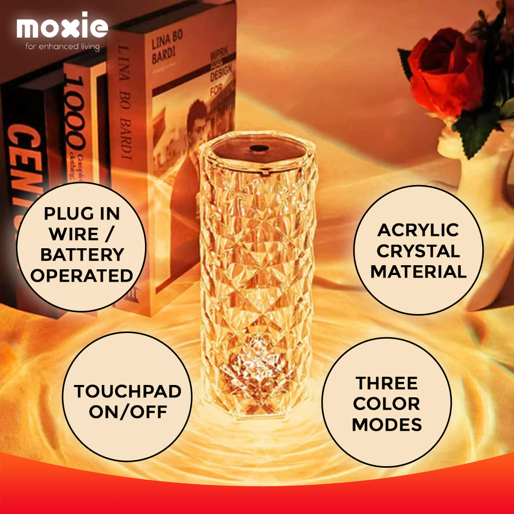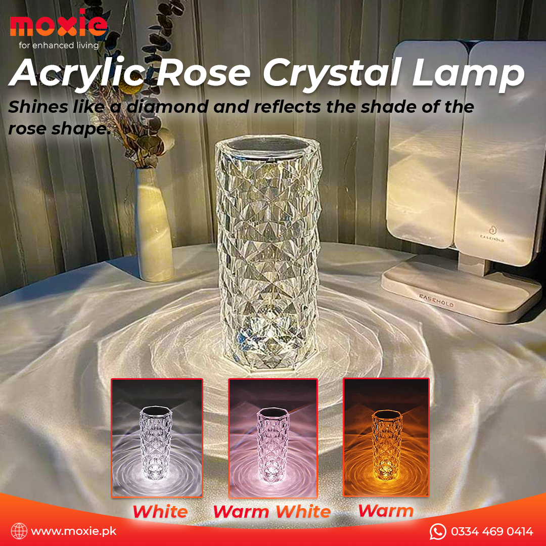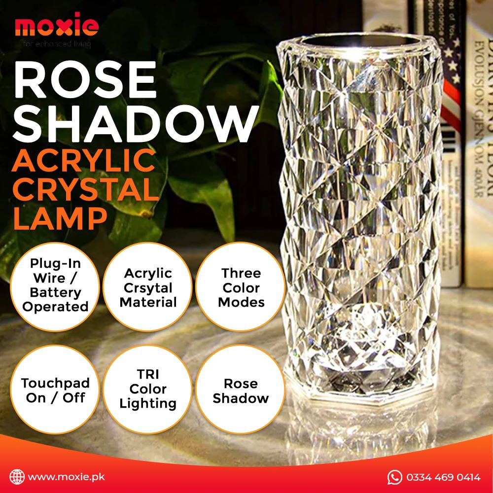 This modern LED Table Lamp (chargeable+wired) is the next big thing in your home. Made of Acrylic Crystal, it shines like a diamond and reflects the shade of the rose shape.