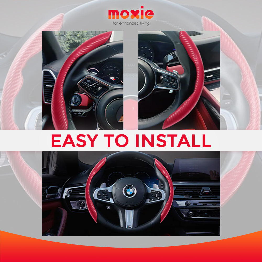 Easy to install, the universal steering wheel cover material (segmented into 2 pieces) is malleable, no need to use any installation tools. Just slide them in the left and right side.